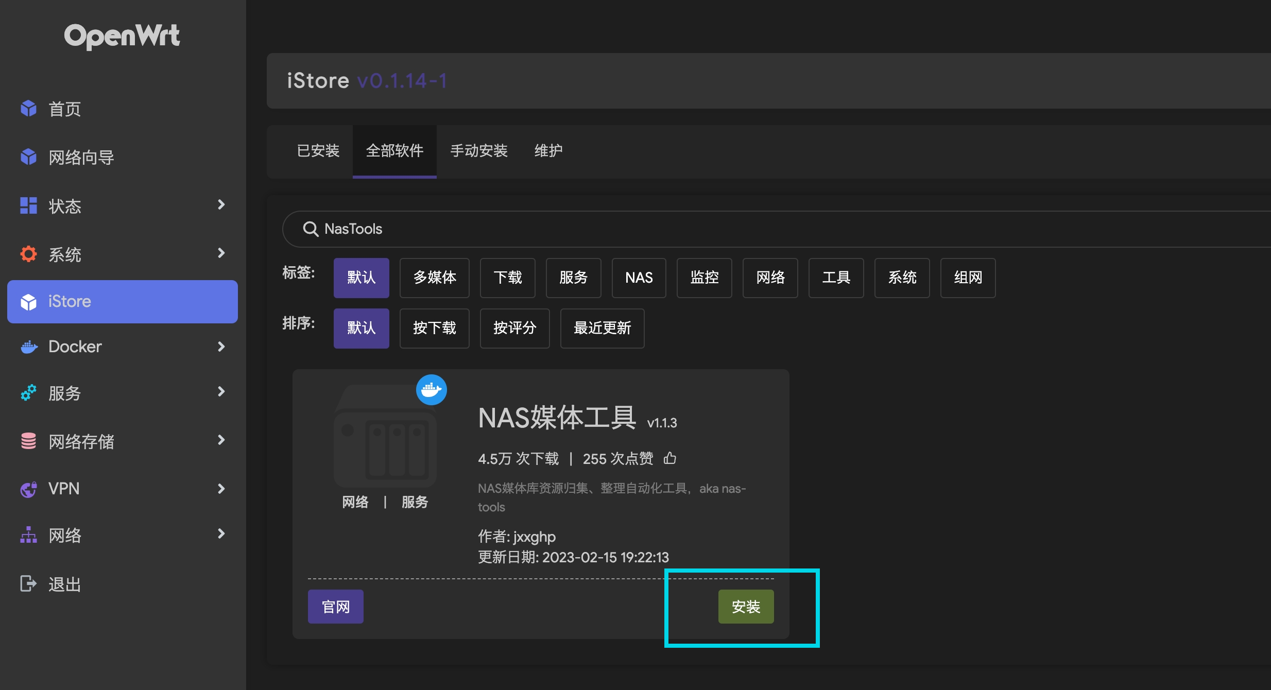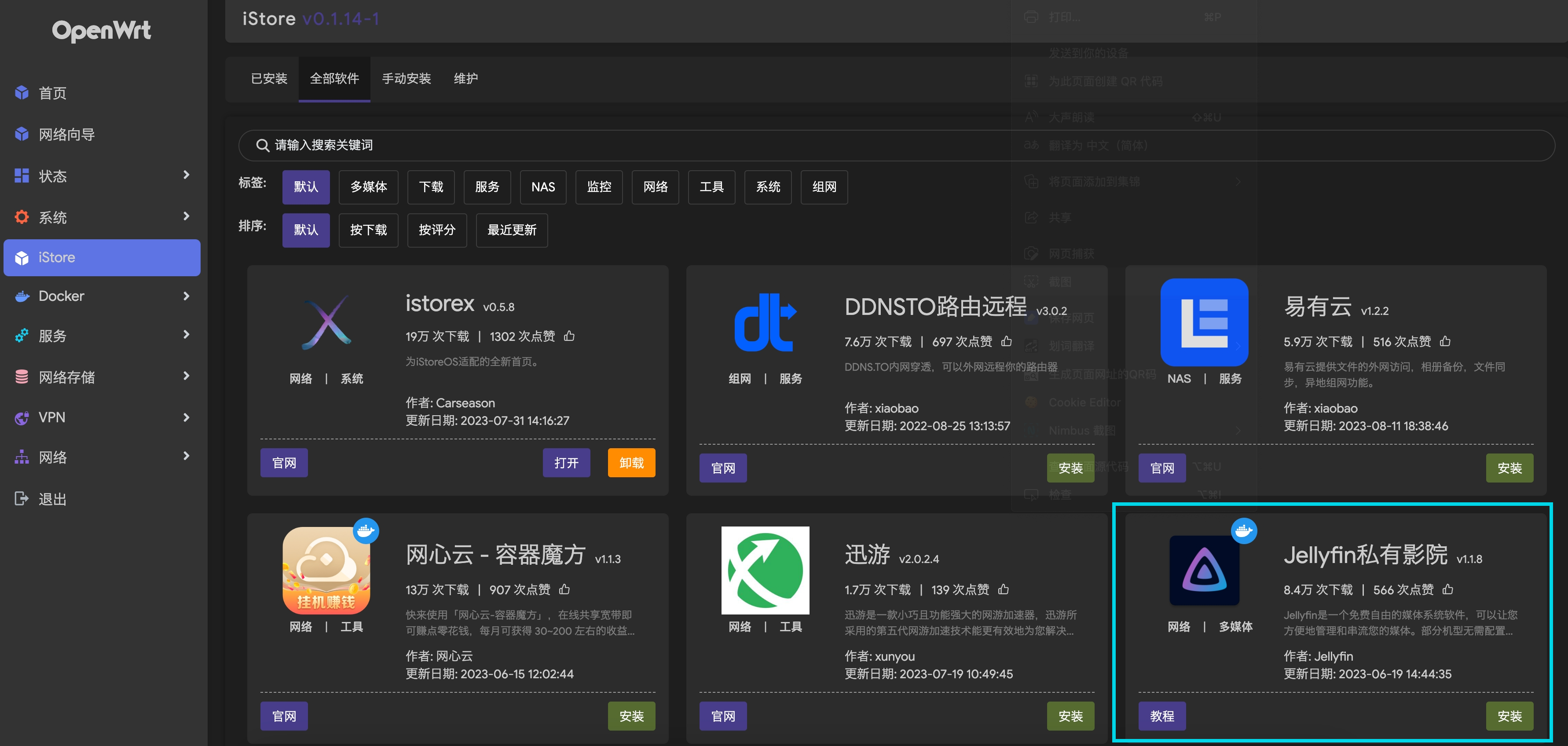 OpenWrt需要安装iStore。