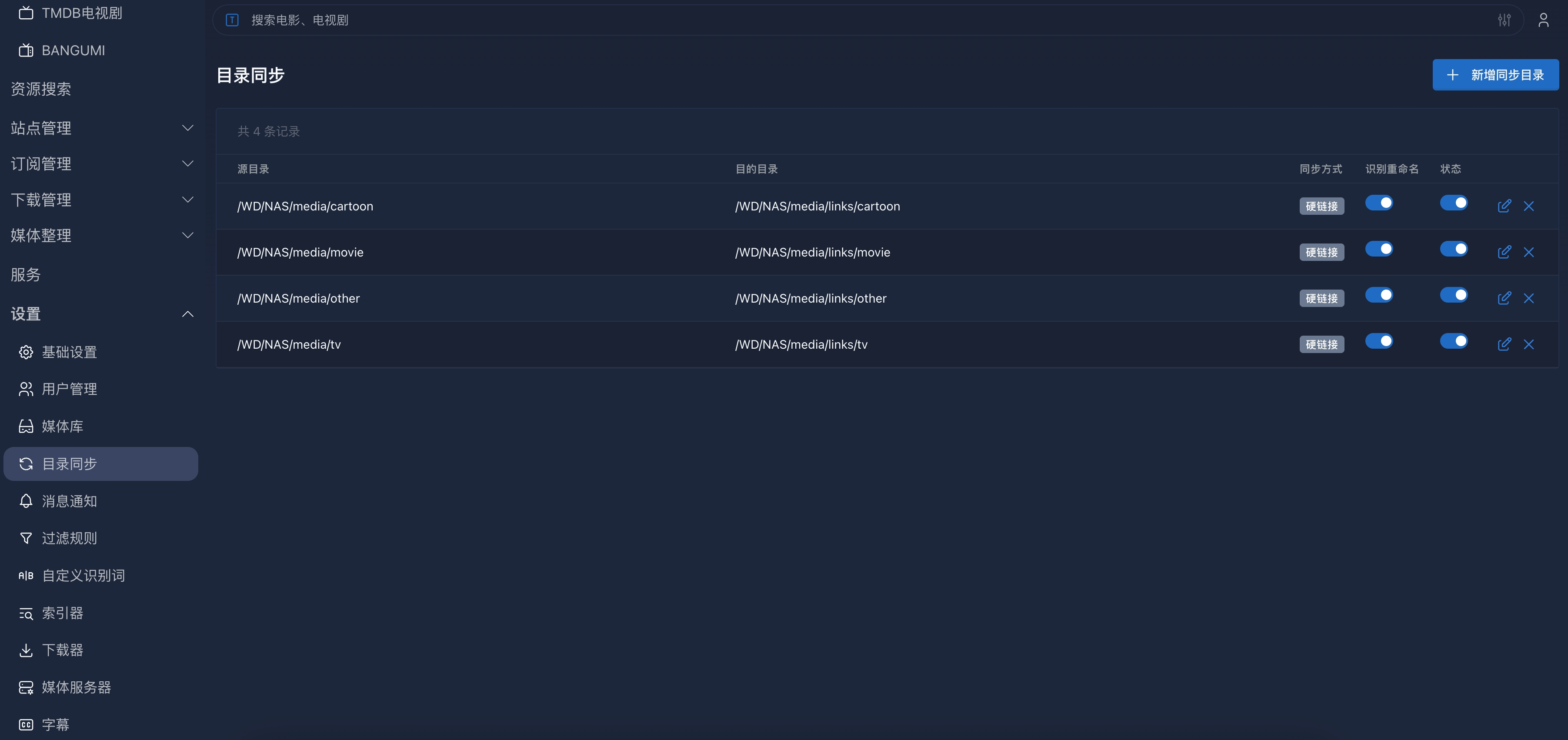 媒体库目录配置