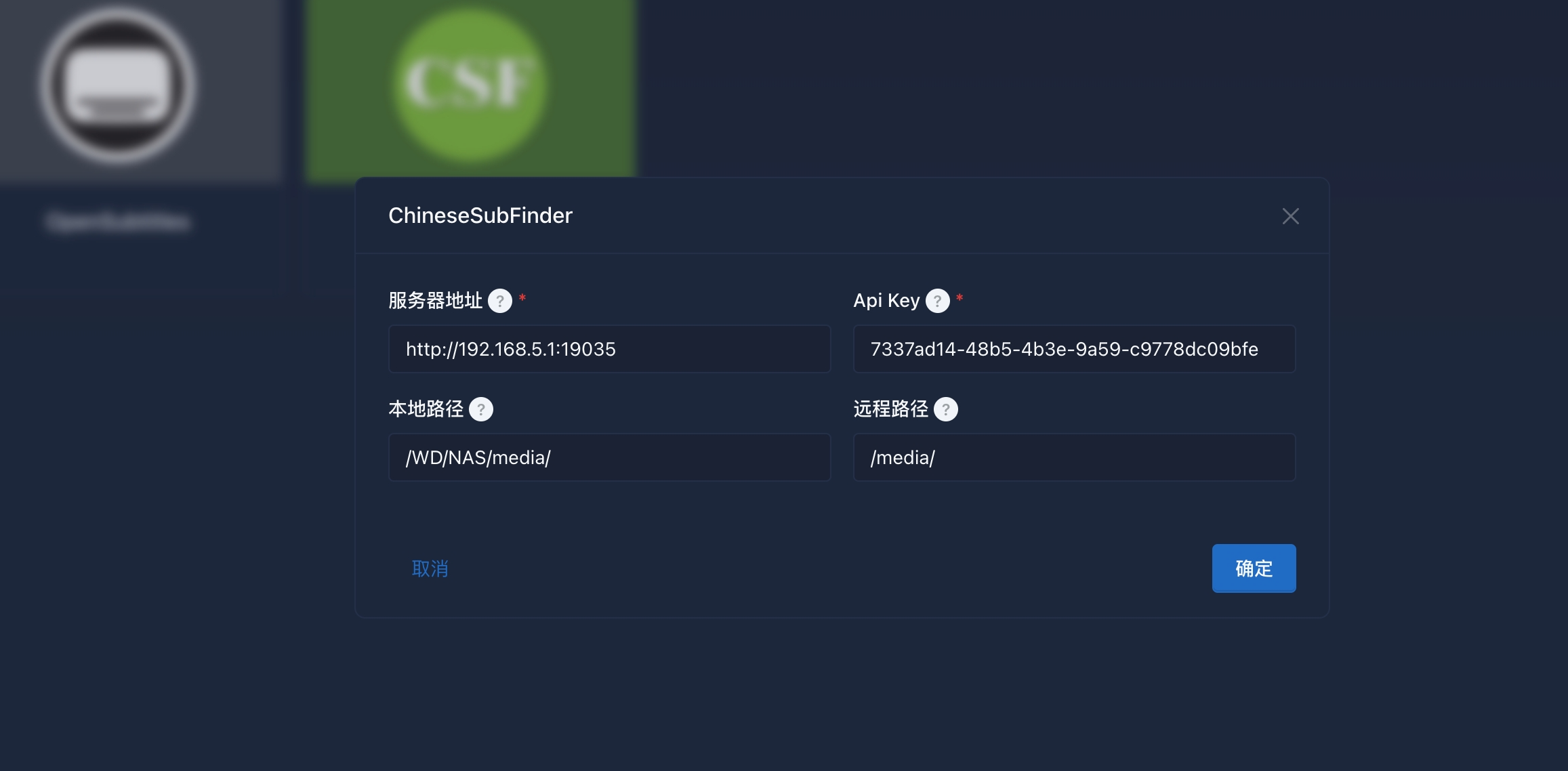 在ChineseSubFinder中配置: