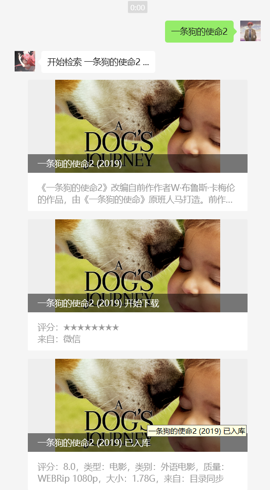 在创建的应用中,直接发送你要订阅的资源的名称即可。NasTools会自动订阅并搜索相关资源并下载。