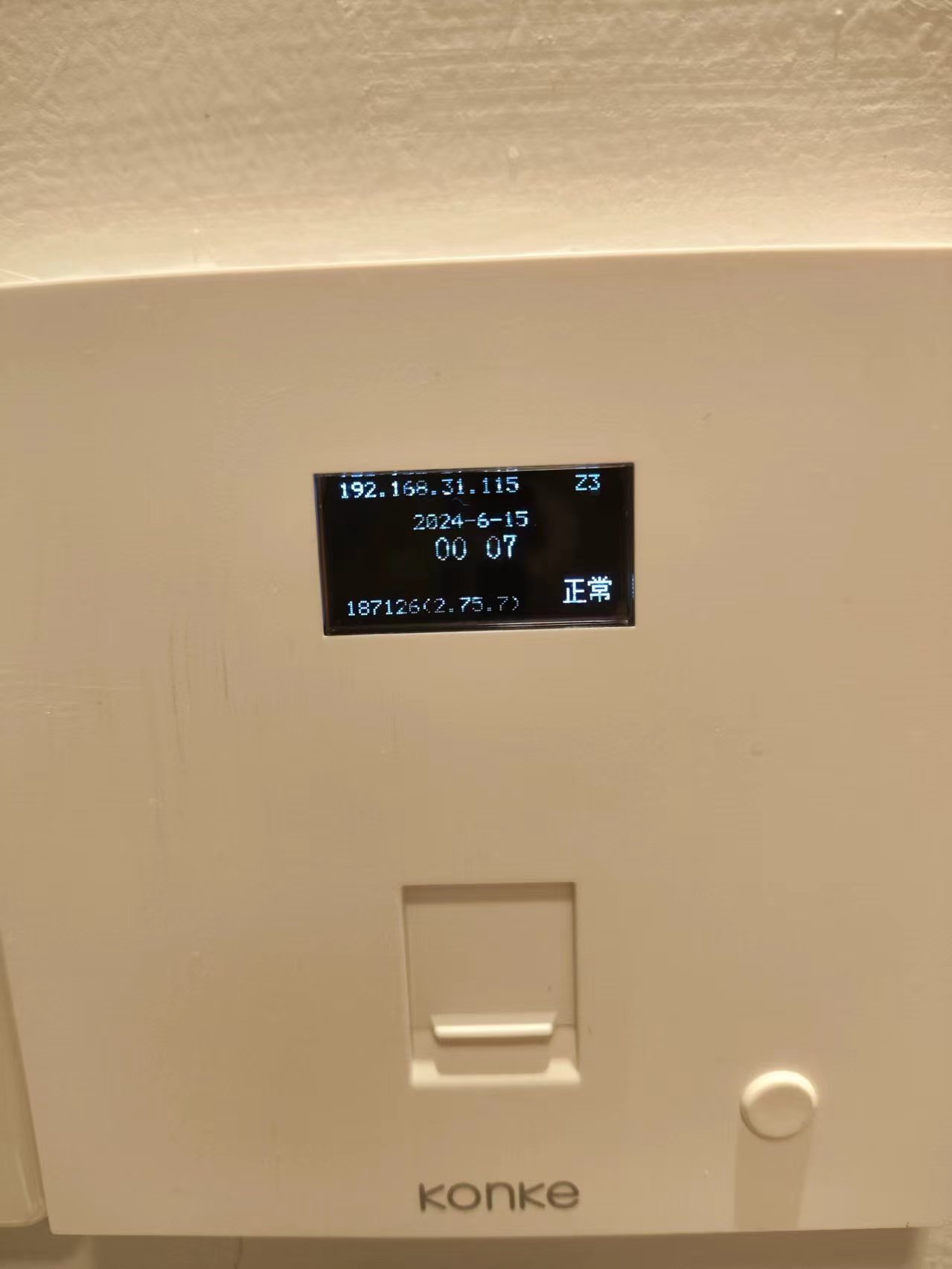 然后检查控客面板显示屏上的信息,如果左上角写的不是0.0.0.0的ip地址,就说明已经连接到光猫/路由器上,如果显示的0.0.0.0,请排查接线是否正确。