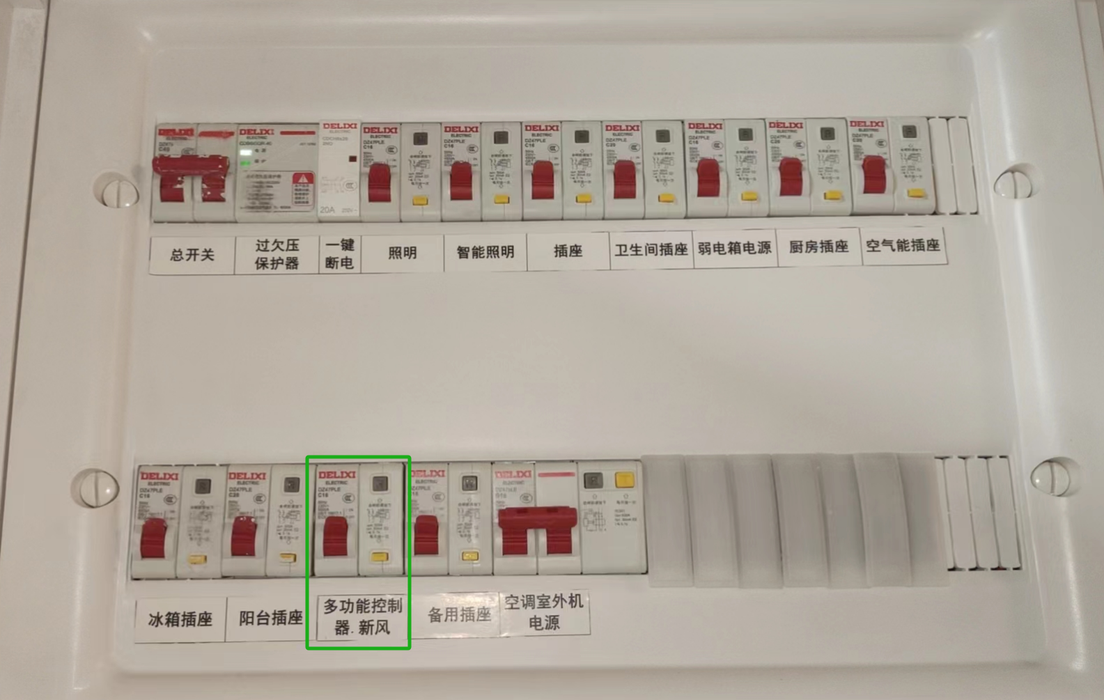 如果空调和新风控制器显示离线,则需要将“多功能控制器、新风”的空开打开,如图所示。然后就可以控制设备了。