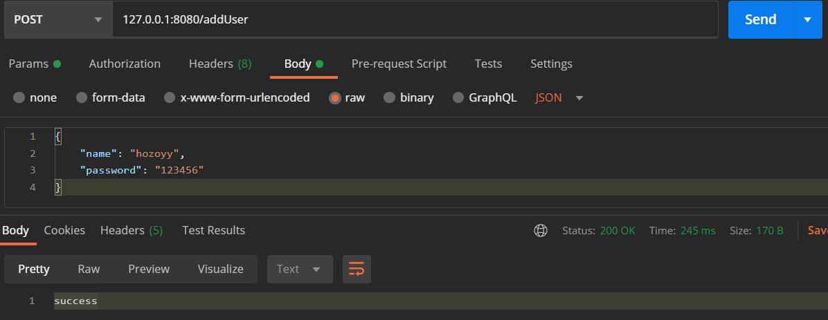 增加用户:如果成功则返回success;验证用户:查询结果直接进行返回